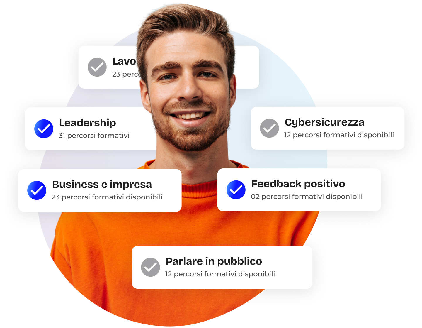 Oltre alle risorse gratuite, offriamo percorsi di competenze progettati per far crescere i tuoi team su vari temi in modo approfondito. I corsi sono certificati e creati dai nostri esperti. Hai anche la possibilità di creare il tuo corso combinando diverse risorse, da solo o con l'aiuto di un nostro esperto