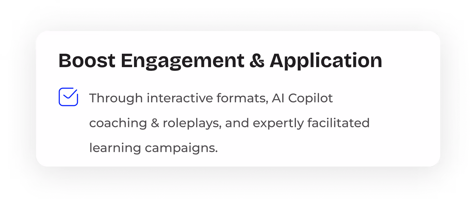 Whether you’re looking to boost engagement, streamline compliance, integrate with complex systems, or receive dedicated strategic support, our solution is designed to solve your biggest learning challenges.