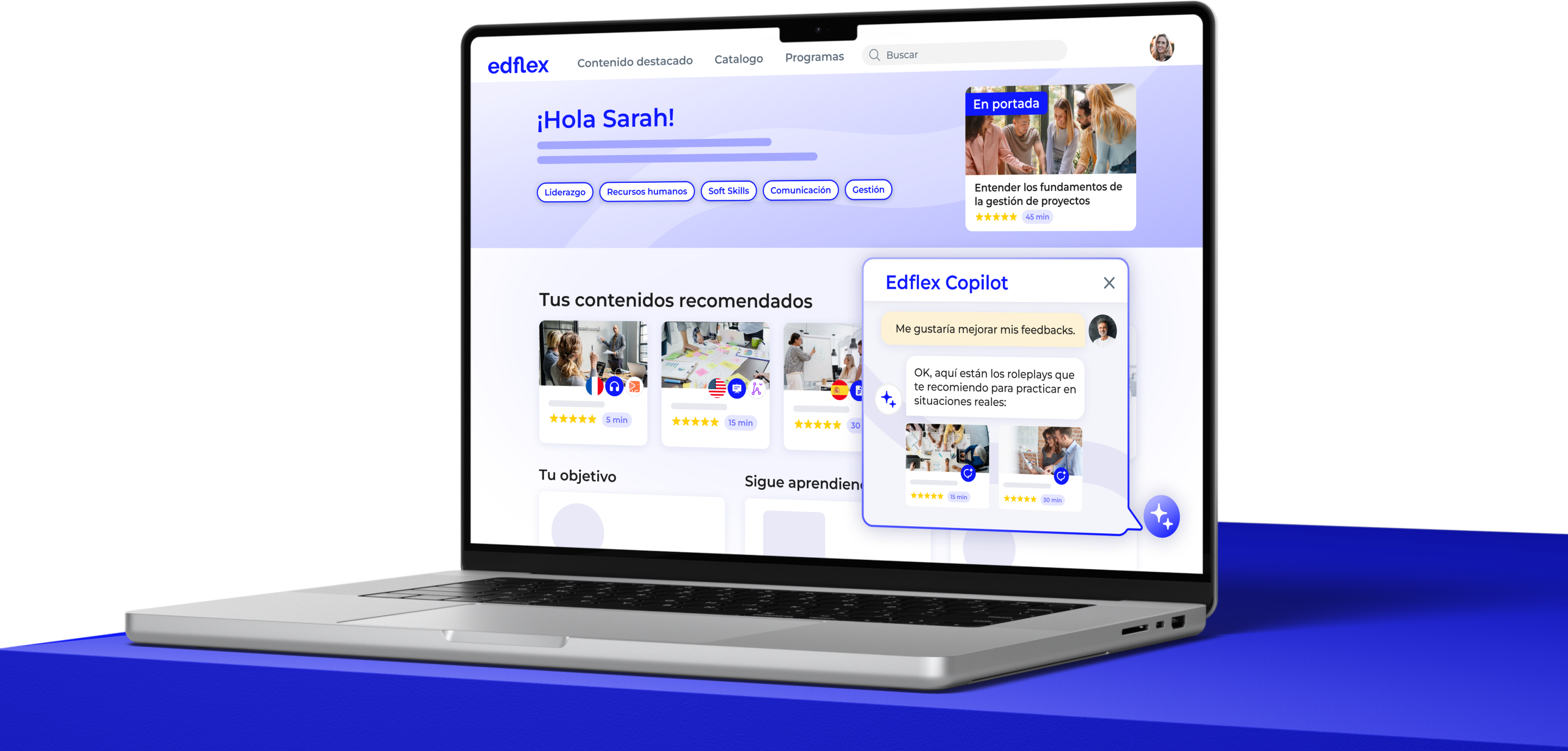 Edflex acelera el desarrollo de competencias. Una experiencia integrada con contenidos de calidad, herramientas de IA y el apoyo de nuestros expertos.