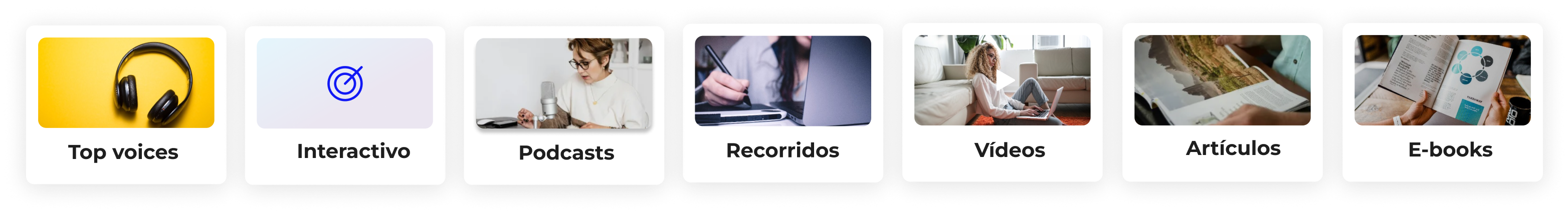 formatos: vídeos, pódcast, artículos, cuestionarios y mucho más.