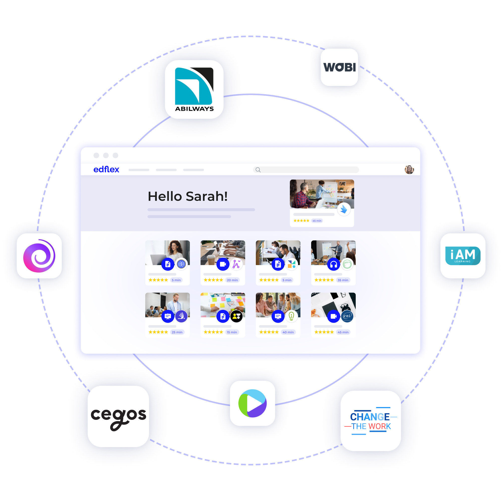 Edflex seamlessly integrates with key players in the market. The goal? Minimize friction, simplify the learning experience for your users, and enhance their engagement. In essence, it provides a fully integrated content aggregator within your ecosystem.